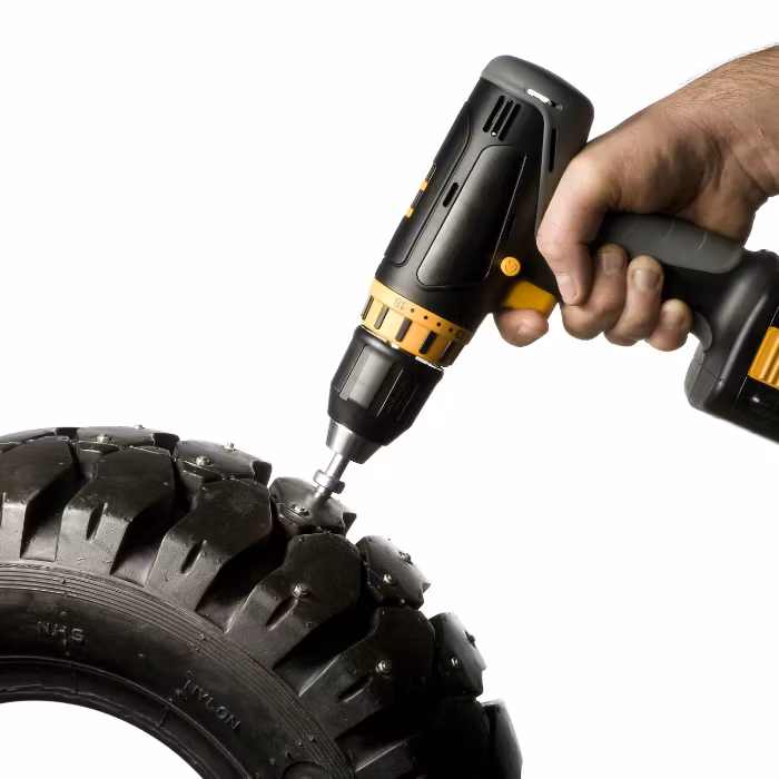 Montering och demontering av dubben sker snabbt och smidigt med det medföljande monteringsverktyget och en vanlig skruvdragare. Antalet dubb anpassas efter behov och däckdimension.